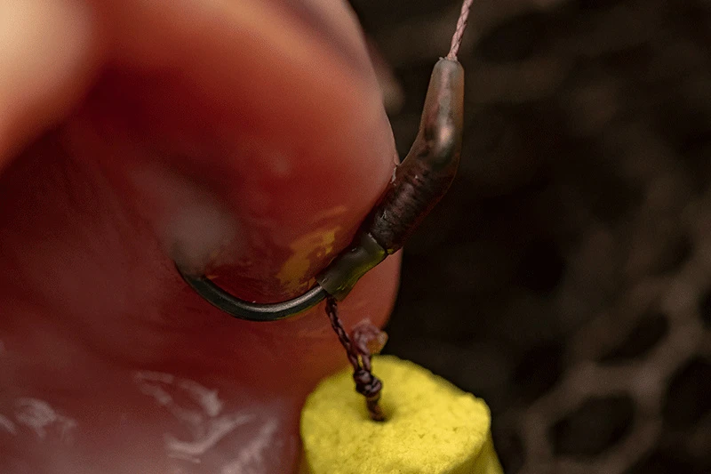 • Schuif een Flippa eenvoudig over uw haaklijn en over het oog van uw haak (we raden u aan de Edges Splicing Needle te gebruiken om de haaklengte te bevestigen)