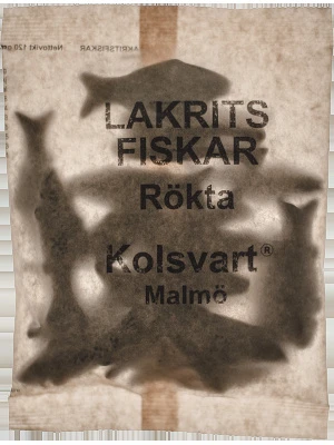 RÖKTA FISKAR is een glutenvrije zoute, visvormige drop die koud gerookt wordt boven elzensnippers.